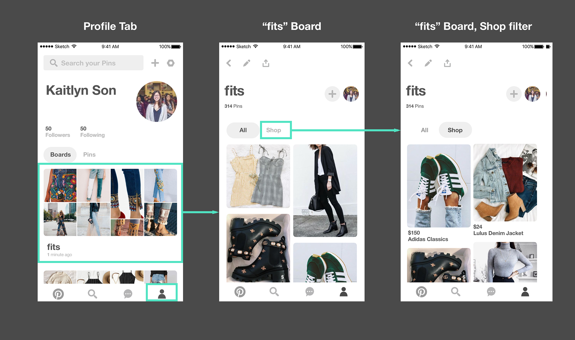 (Middle) A redesigned Board with All and Shop filters
